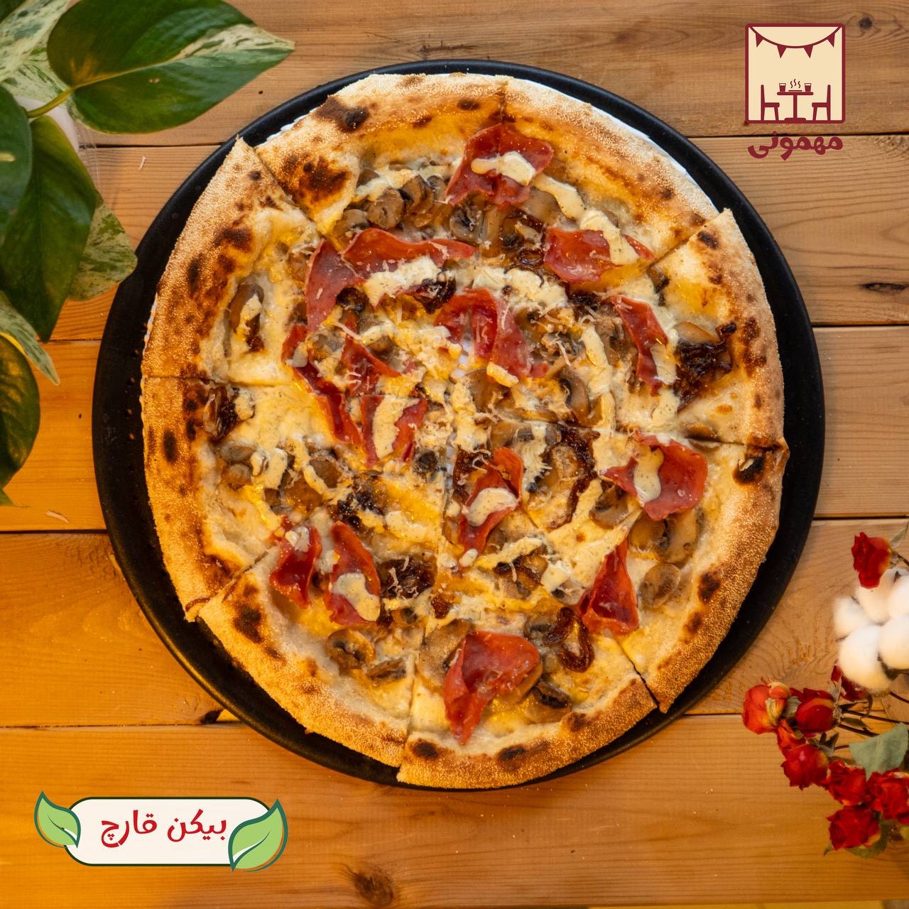 پیتزا بیکن و قارچ عدد